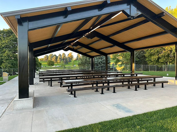 The largest pavilion in Sugar House Park is the ideal venue for special events. Located at the end of the park's spoke road and adjacent to the Big Field Multi-use Athletic Field. This pavilion is currently only half-filled with picnic tables and seats 122 people. The other half of the pavilion serves as a flexible space for various event activities, including live music, dancing, a stage, or a ceremony. Rent this pavilion if you plan to reserve the adjacent field.